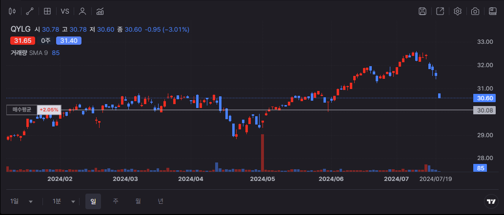 - 수익률: QYLG는 최근 몇 년간 안정적인 수익률을 기록하고 있으며, 이는 커버드 콜 전략 덕분.